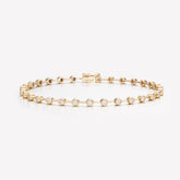 A dazzling array of round diamonds in a bezel setting shimmers like sunlit raindrops, perfect for the fearless fashionista who wants to make a bold statement without the bulk. Perfect for layering, this bracelet is sure to be the star of your stack.
